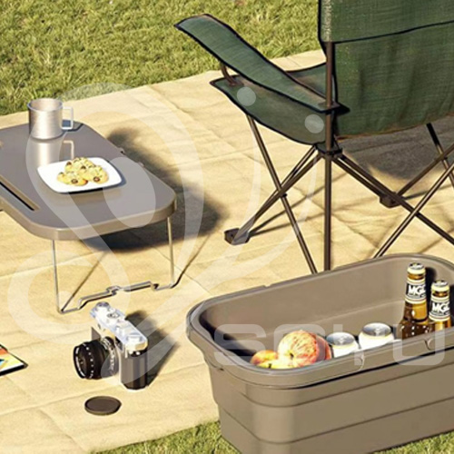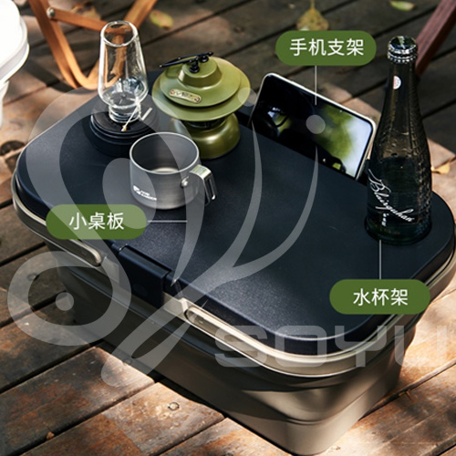 3. 產品特色: 可提水,防水,可折疊收納, 蓋子附腳架可當桌板,手機架, 適用野餐露營主題。